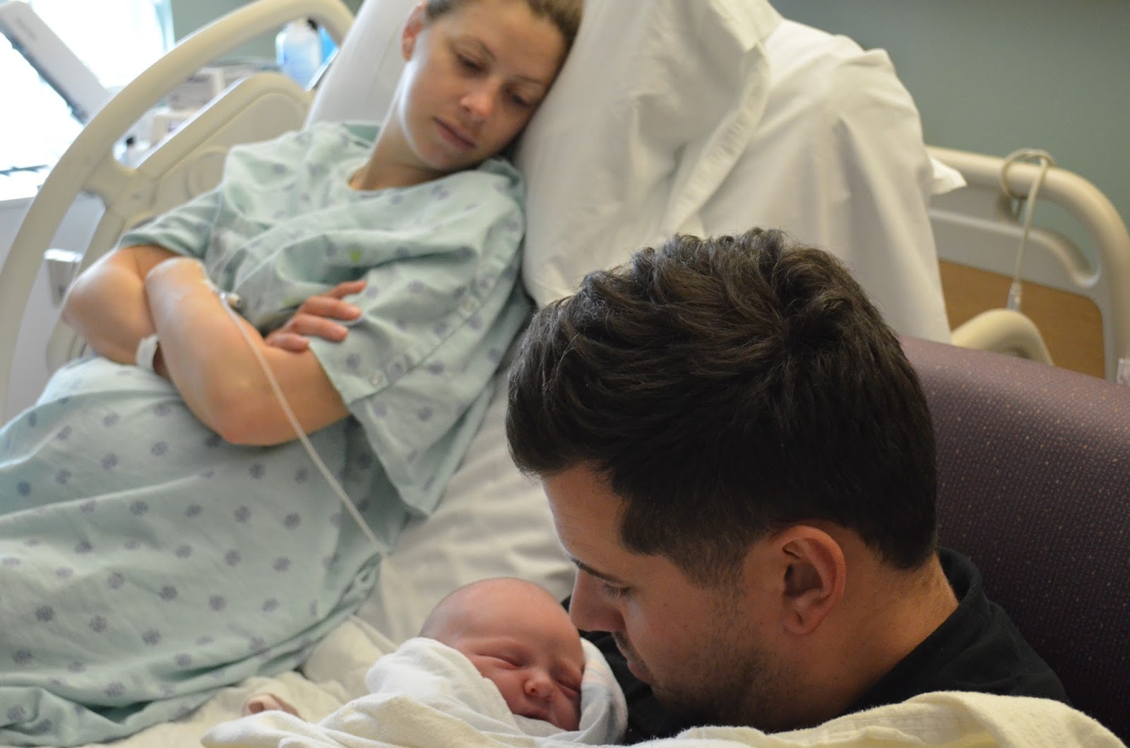 1:30am finally came. 22 hours into labour and I was finally assigned a nurse, officially admitted into the IWK and and given an Epidural. Rob watched and held me in position. Guess it was a scary moment for him and the needles were huge. Finally, the pain was gone and we could sleep. Rob in an easy chair pulled as close to the bed as he could get it and me on my side facing him.