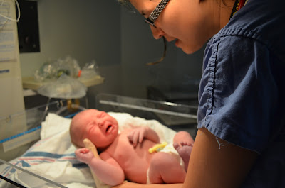 3:30am check, 7-8cms. YAY!! we let Rob sleep…6 am check, 10 cms. The nurse asked me to attempt to push, and immediately screamed stop. He was ready to come. she ran and called my doctor who lives 20 mins away and let me rest and wake Rob up before the final adventure began. Once my doctor arrived, i only had to push for 14 mins and almost at one point in-between contractions laughed him out.